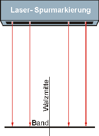 Um die Lage eines erkannten Fehlers einem Bandbreitenbereich zuzuordnen, d.h. seine Breitenkoordinate zu bestimmen, wurde die „Laser-Bandspurmarkierung“
