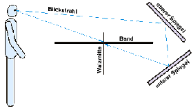 Um die Ober- bzw. Ober- und Unterseite des Bandes prüfen zu können, werden diese dem Prüfenden eingespiegelt. Wir setzen